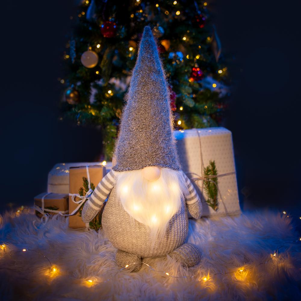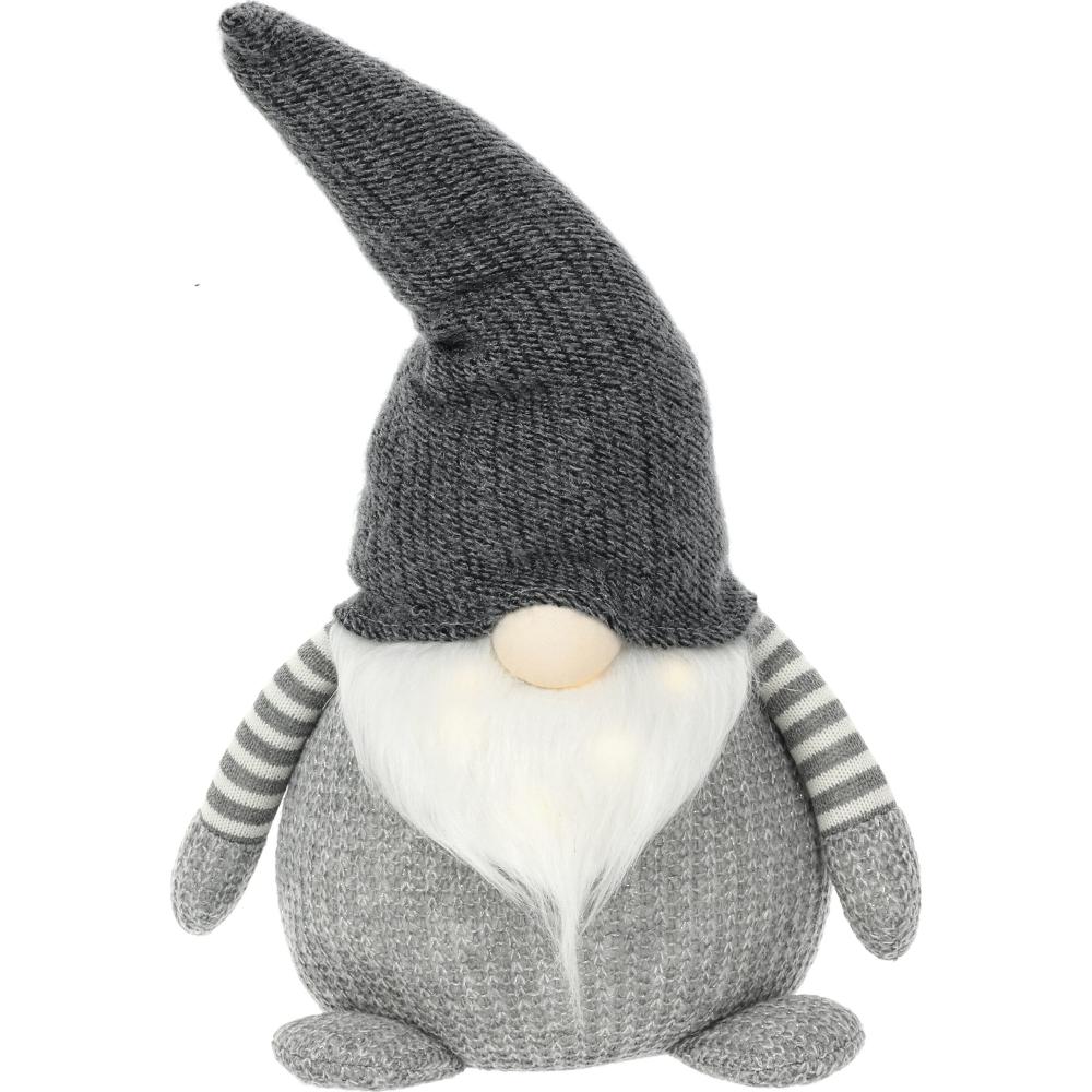 Karácsonyi manó / 6 LED / meleg fehér színárnyalat / Szürke szín / 60 cm magasság / Alkalmas beltéri használatra / 2x CR2032 alkáli elemmel működtethető