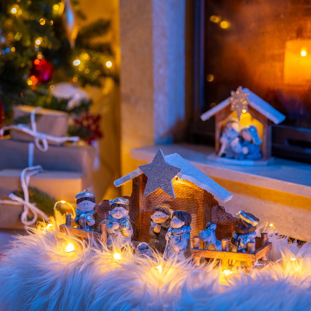 Karácsonyi Betlehem / 1 LED / meleg fehér színárnyalat / 15 x 15,5 x 6,5 cm / Alkalmas beltéri használatra / 2x LR44 alkáli elemmel működtethető