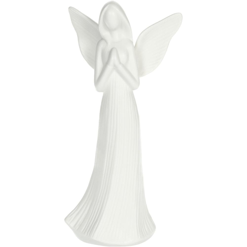 A zománc bevonatot nem tartalmazó porcelánból készült angyal kiváló választás a matt kivitelű díszek kedvelőinek. A szobor belsejében 1 LED lámpa található, amely a bekapcsolás után meleg fehér színnel árasztja el a helyiséget és kellemes hangulatot teremt. Ez a fehér angyal igazi védelmezője az őszi és téli estéknek.