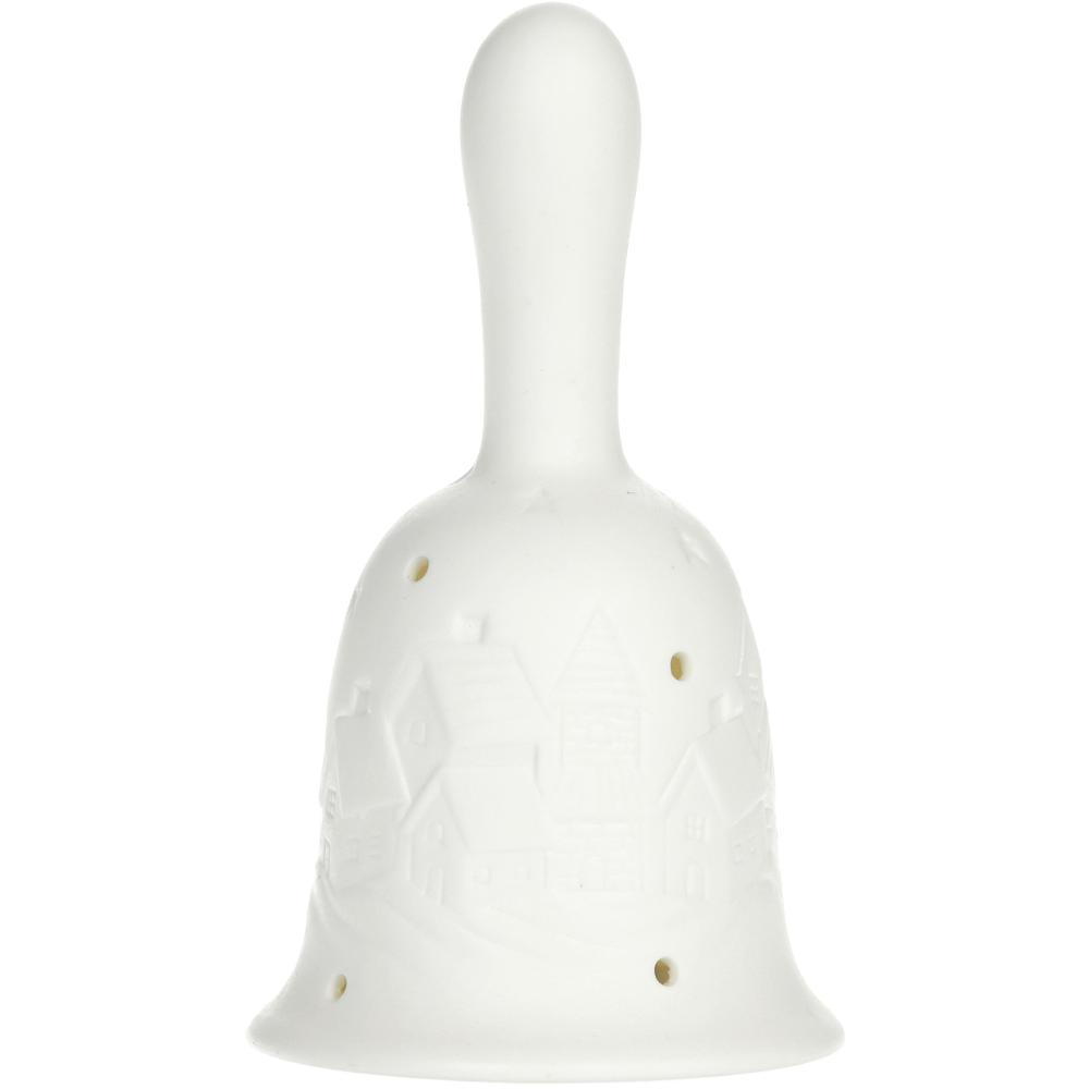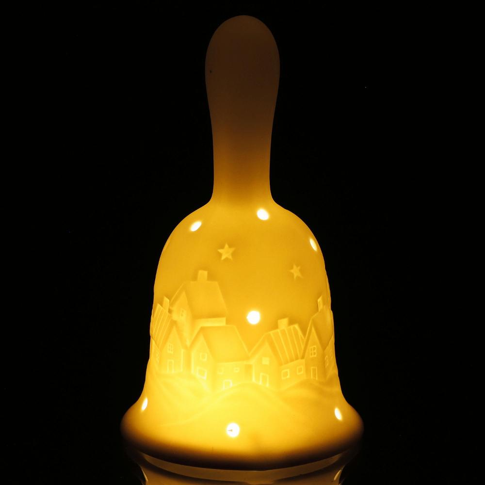 Porcelán harang falusi dekorációval és meleg fehér LED-es lámpával. Méret: 7,5 x 7,5 x 13,2 cm. 3 LR44 akkumulátort tartalmaz. Csak beltérben használja.