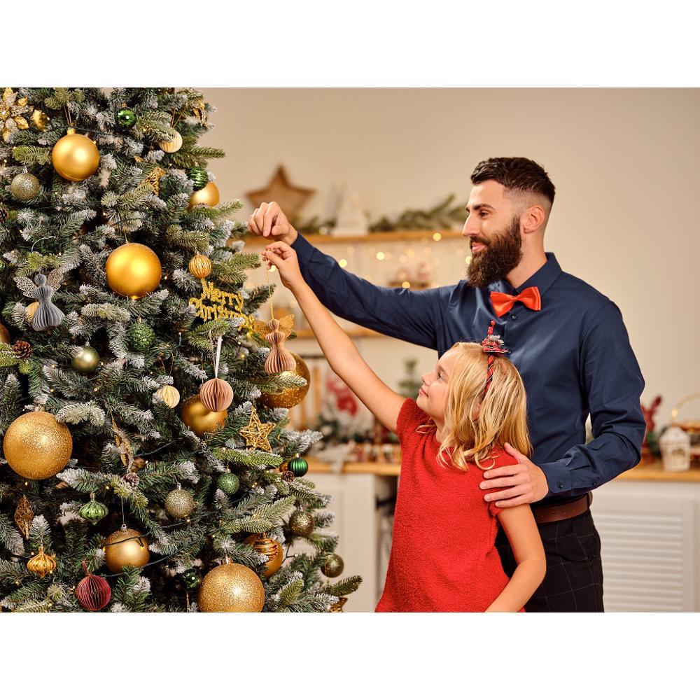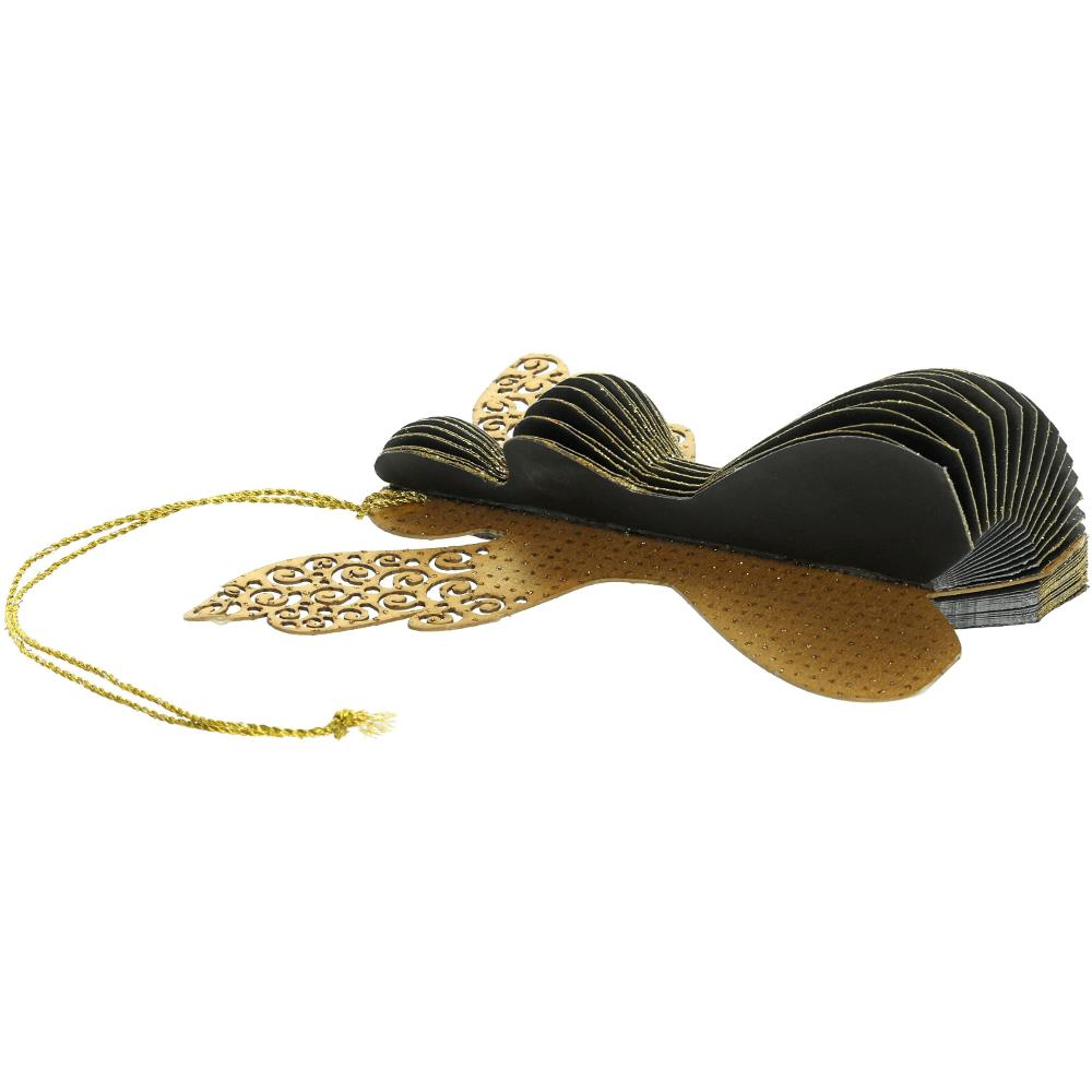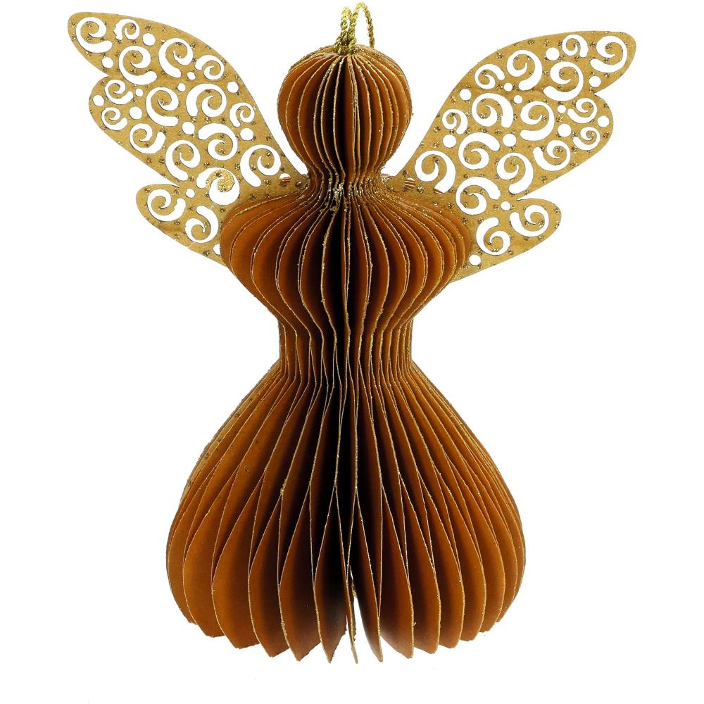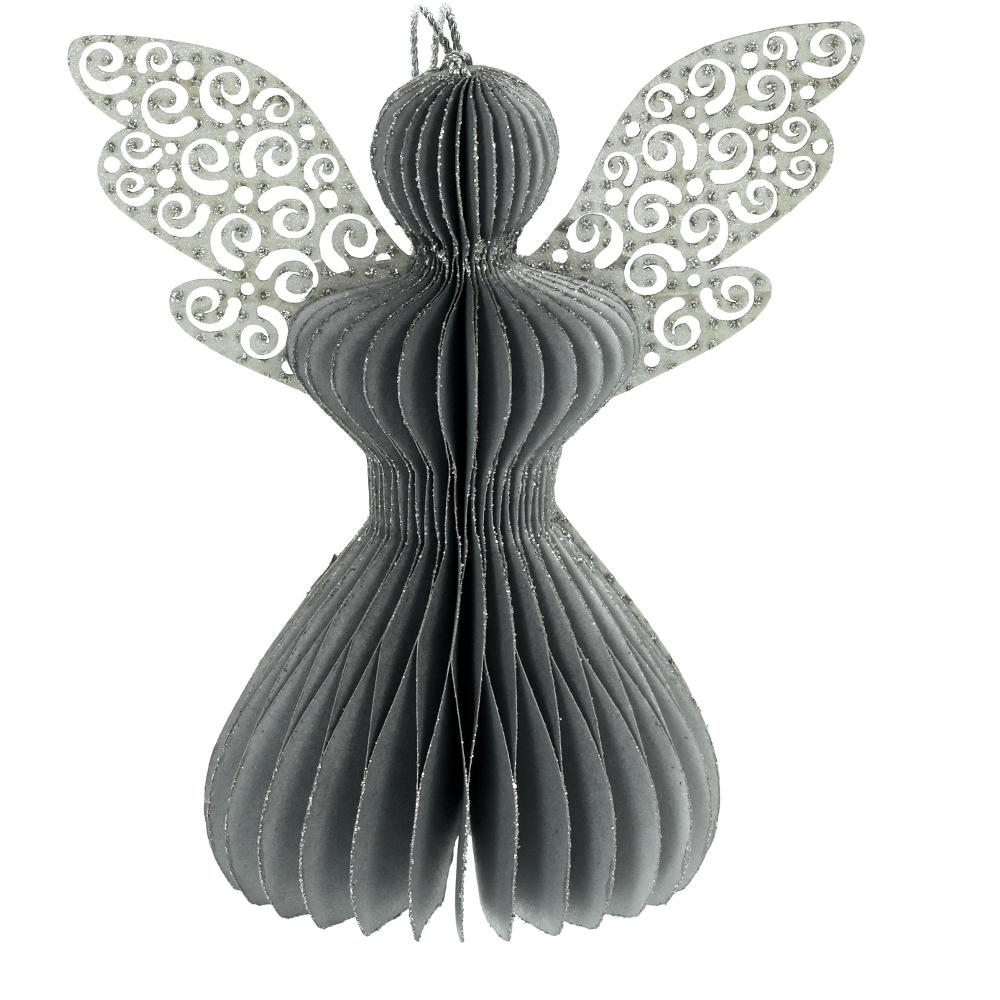 4 gyönyörű papírdísz angyal alakjában. A hajtogatott díszek méhsejt alakúak, arany csillogással a széleken. A készlet négy színű dekorációt tartalmaz: fekete, rózsaarany, mustár és ezüst. Csak beltérben használja.