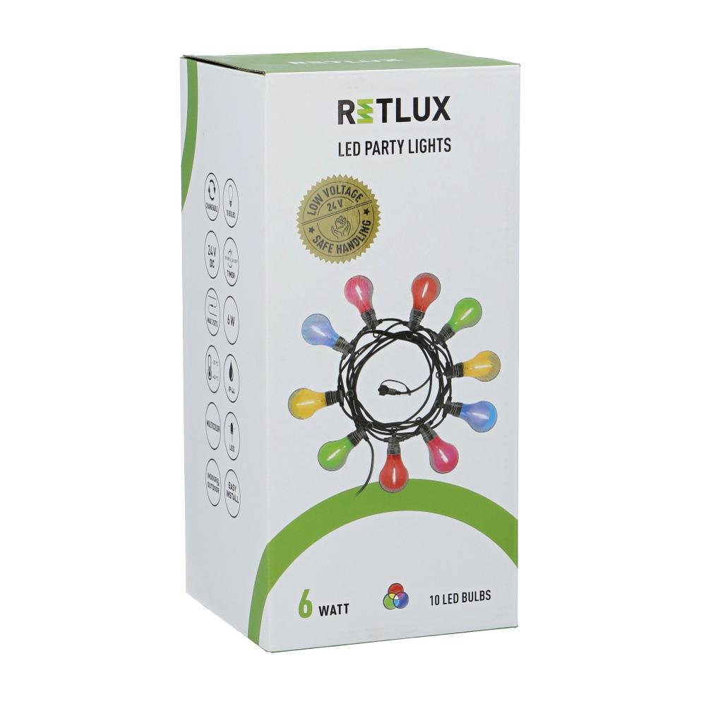 A Retlux parti fényfüzére, fényt visz a buliba! Elképesztő buli hangulat varázsolható vele pillanatok alatt. Két színű változatban kapható, színes és sima fehér, melyeket akár kedve szerint kombinálhat. IP44-es védettséggel lett ellátva, így nem jelent problémát, ha parti után kint marad.