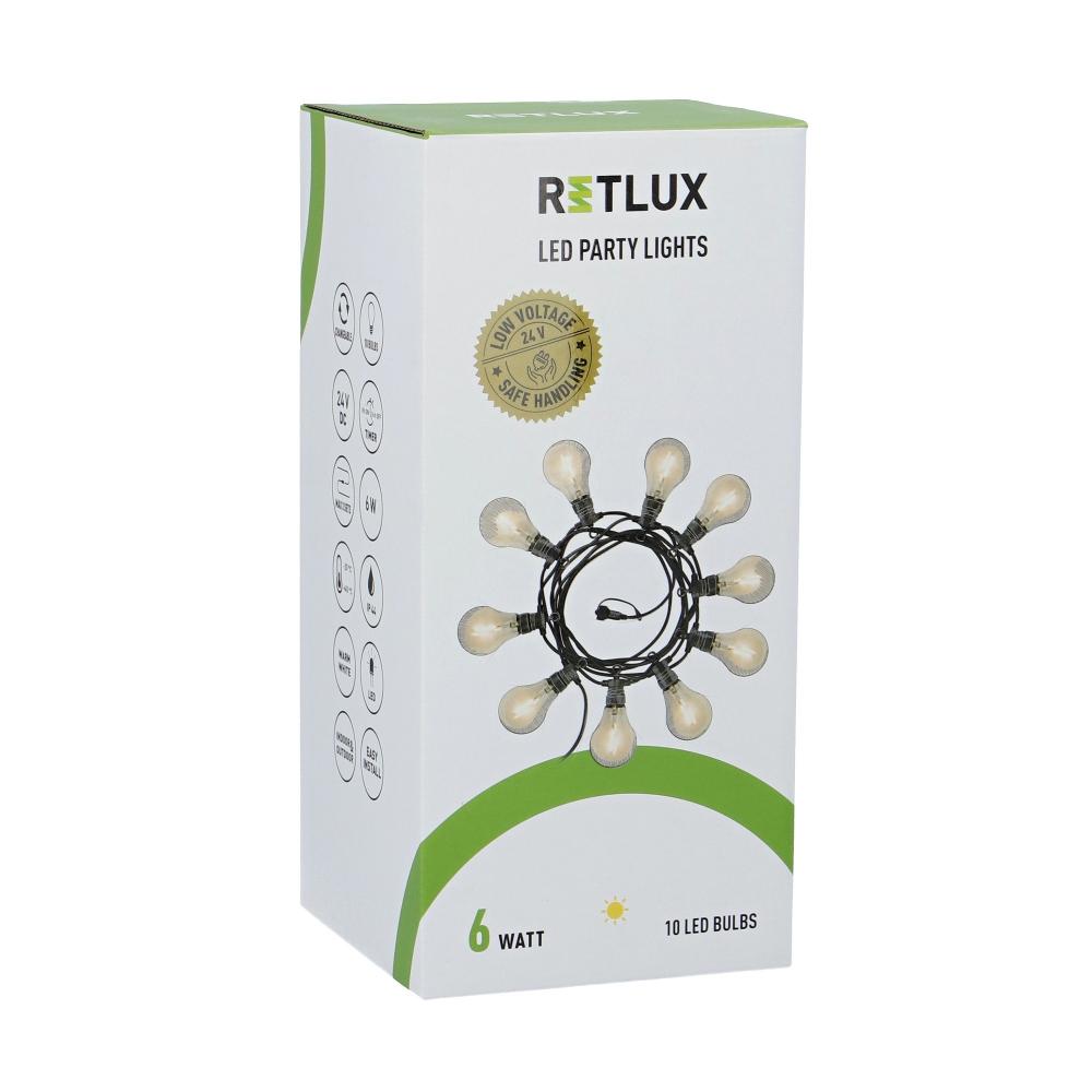 A Retlux parti fényfüzére, fényt visz a buliba! Elképesztő buli hangulat varázsolható vele pillanatok alatt. Két színű változatban kapható, színes és sima fehér, melyeket akár kedve szerint kombinálhat. IP44-es védettséggel lett ellátva, így nem jelent problémát, ha parti után kint marad.
