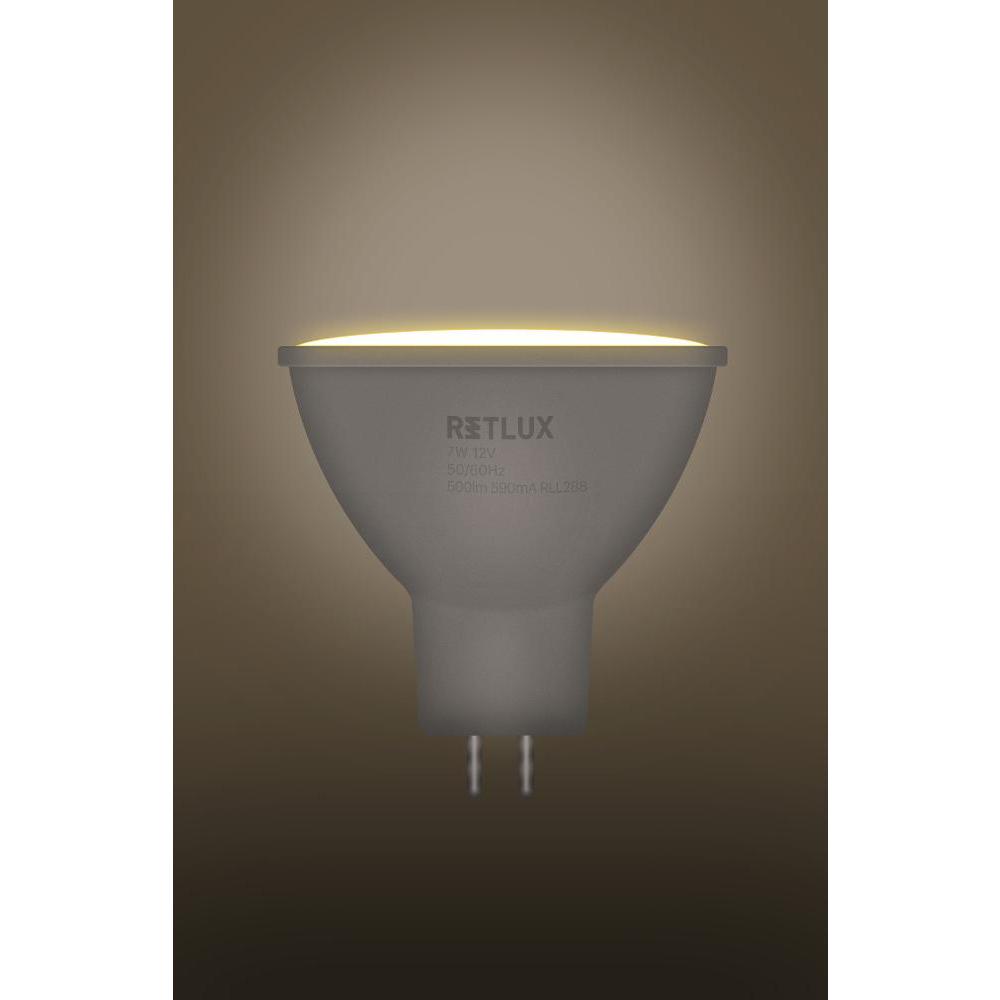 A Retlux RLL 420GU5.3 LED izzó 7 W teljesítményű és GU 5.3 foglalathoz alkalmas. 3000 K színhőmérsékletével az RLL 420 meleg fehérben ragyog. A fény nem csak kellemes látvány, hanem természetes is a szeme számára. A fényerő tekintetében sem marad el. Akár 500 lm-rel is megvilágítja az íróasztalt, és egy egész kis helyiséget. Ha csillárban használja két további darabbal együtt, egy egész nappalit kivilágíthat. Az izzó élettartama több mint 20 000 óra.