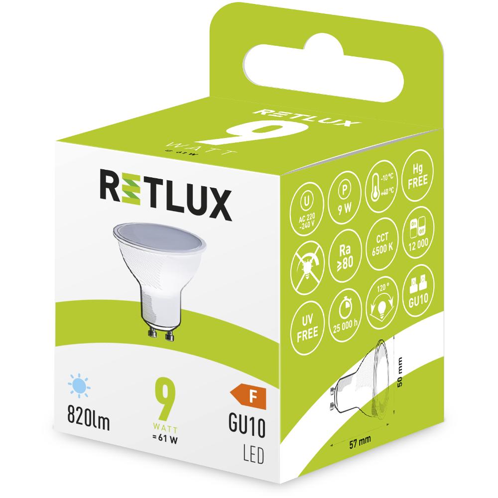 A GU10 foglalatú Retlux reflektoros LED izzók leggyakrabban álmennyezetekben, spotlámpákban és fürdőszobákban használatosak. Kisebb izzók, amelyek megbízhatóan megvilágítanak egy kisebb területet vagy egy nagyobb helyiséget, ha több darabot használnak. Többféle változat közül választhat, 3 W-tól 9 W-ig, ami 25 W-tól 50 W-ig képvisel izzólámpákban.