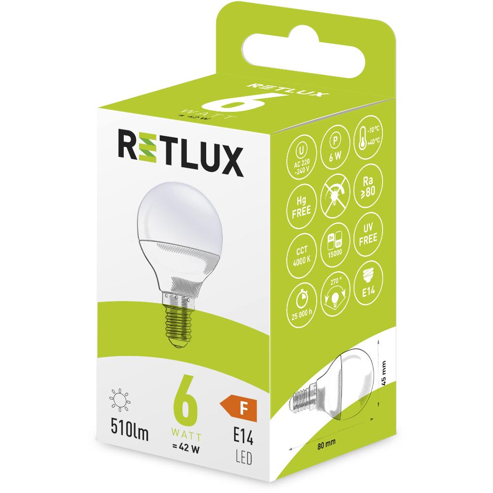 Nagy fénysűrűség kis testbe csomagolva. A Retlux Mini gömbök kompakt izzók, alacsony energiafogyasztással és hosszú élettartammal rendelkeznek. A minimális élettartam 20 000 óra, ami azt jelenti, hogy körülbelül két és fél évig képesek folyamatosan fényt termelni. A gyakorlatban sokkal kevesebb fényt használunk, így ezeket az izzókat több évig használhatja majd.