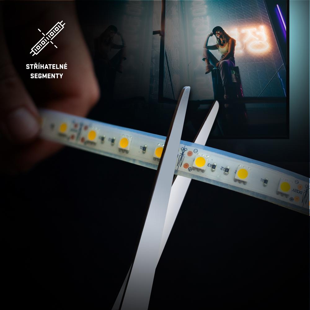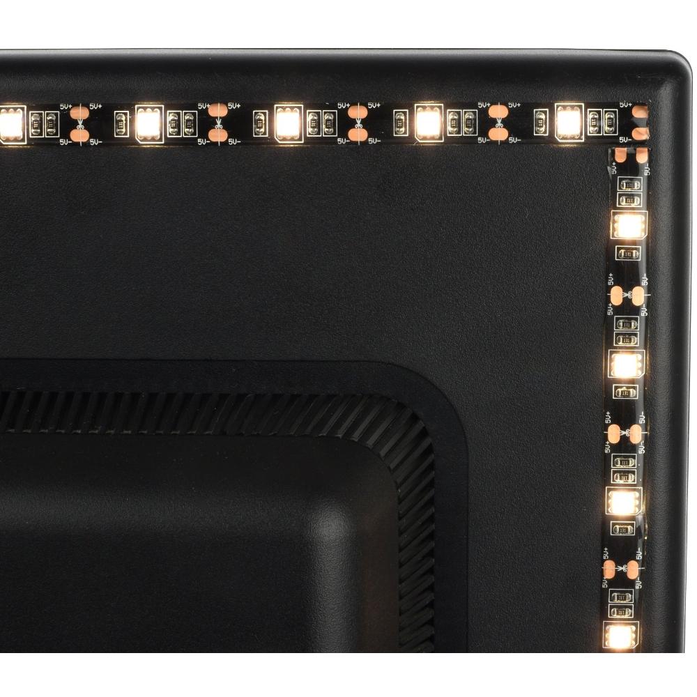 Nem kell fáradságosan csatlakoztatnia, egyszerűen ragassza a TV vagy a monitor hátuljára, és csatlakoztassa USB-n keresztül. Nem kell attól tartani, hogy csúnya átfedést hoz létre – beállíthatja a hosszúságot a szegmensek levágásával az Ön (és a tévéje) igényei szerint.