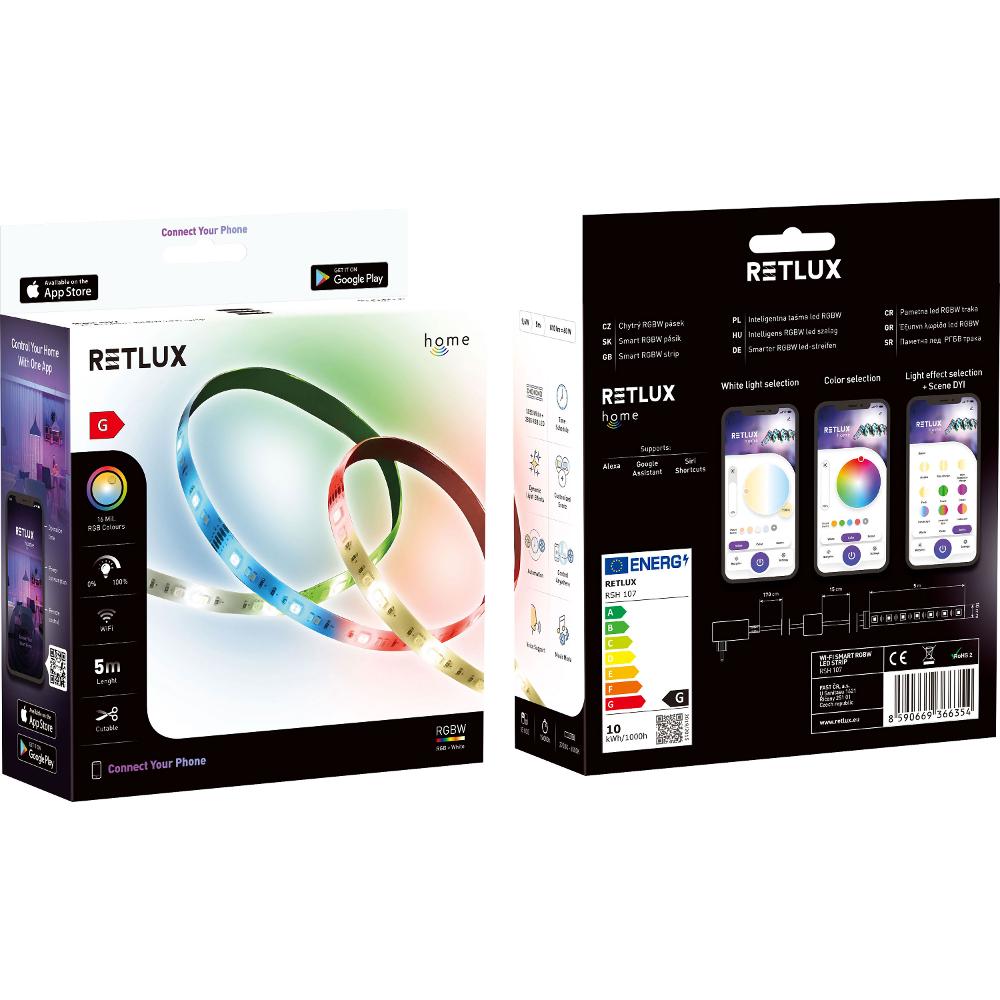 Legyen ellenőrzése alatt az otthon világítása. A LED okos fényszalagot egyszerűen lehet működtetni az iOS vagy Android rendszerű mobiltelefonra telepített RETLUX Home alkalmazásból. Az alkalmazásban beállítható a fényszalag fényereje, színe, világítási programja, továbbá a fényszalag a háztartás egyéb okos eszközeit tartalmazó rendszerbe is integrálható. Ez a világítás bármilyen helyzethez beállítható. Az 5 méteres fényszalag 450 LED diódát tartalmaz.