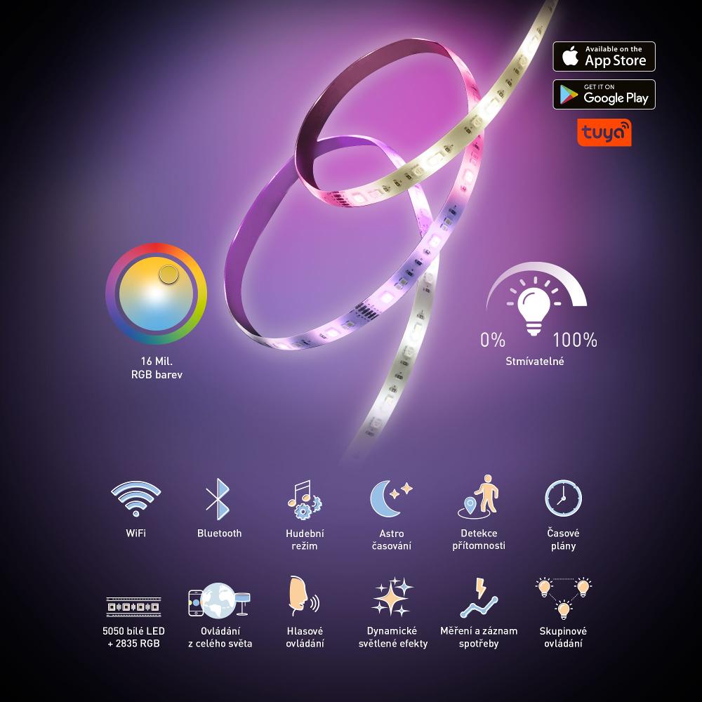 A LED fényszalag Alexa, Siri és Google hangasszisztensek segítségével is működtethető. A jelenlétérzékelés funkció automatikusan be- és kikapcsolja a lámpát, a Plug and Play funkciónak köszönhetően a fényszalag Wi-Fi hálózati csatlakoztatás nélkül is üzemeltethető. A LED okos fényszalaghoz dinamikus fényeffektusokat is be lehet programozni, így a fényszalag dísze is lesz a lakásnak.