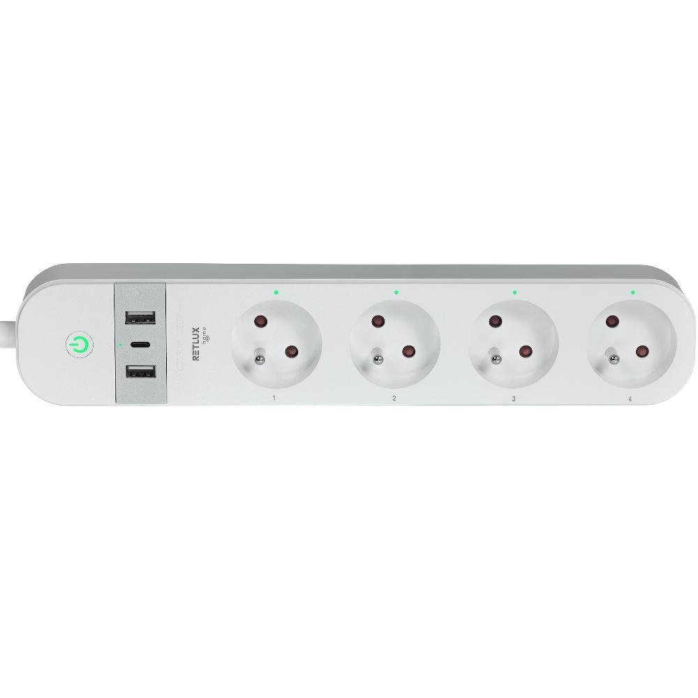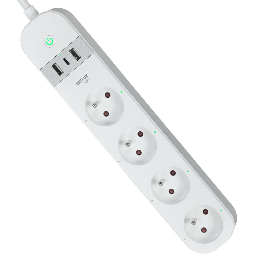 A 4 hagyományos elektromos aljzatot, egy-egy USB-A és USB-C aljzatot tartalmazó hosszabbító és a mobiltelefonjára telepített alkalmazás használatával folyamatosan felügyelheti a csatlakoztatott készülékek működését és áramfogyasztását. iOS vagy Android rendszerű mobiltelefonra töltse le a RETLUX Home alkalmazást, és otthonról vagy bárhonnan állítsa be és működtesse a hosszabbítóhoz csatlakoztatott készülékeket. A áramfogyasztás funkcióval nyomon követheti az egyes készülékek fogyasztását, és szükség esetén (akár távolról is) energiatakarékos módon működtetheti a készülékeket.